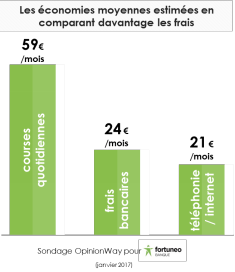 Les frais bancaires se positionnent devant les forfaits de téléphonie/internet (21€/mois d’économies estimées) et après les courses quotidiennes (59€/mois d’économies estimées).